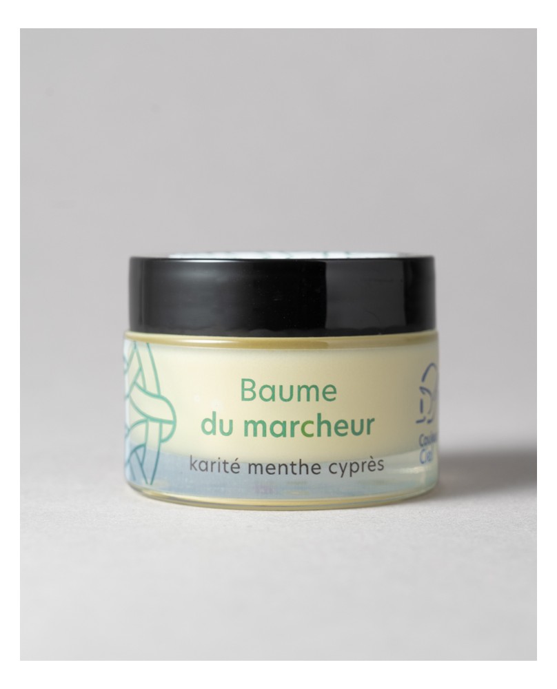 Ingrédients : beurre de karité, huile d’olive, huile de coco, cire d’abeille, huiles essentielles de menthe arvensis, genévrier commun, eucalyptus radiata, cyprès, tocophérols (anti-oxydant naturel).